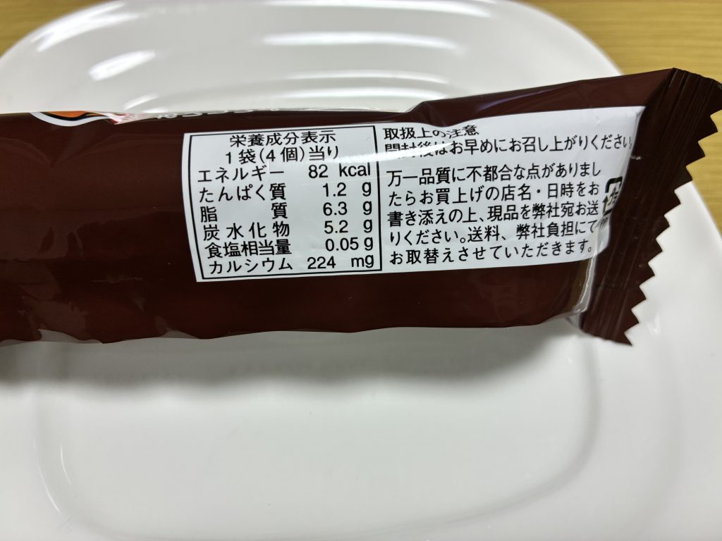 内容量は1袋4個、カロリーは82kcal、購入時は32円です。