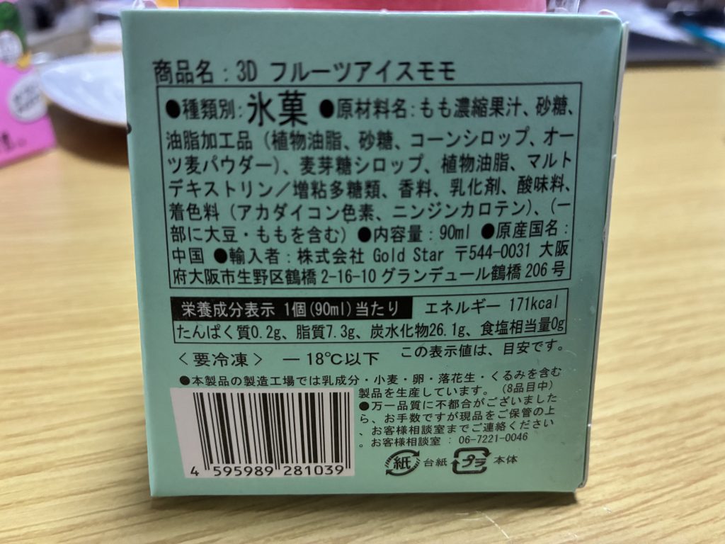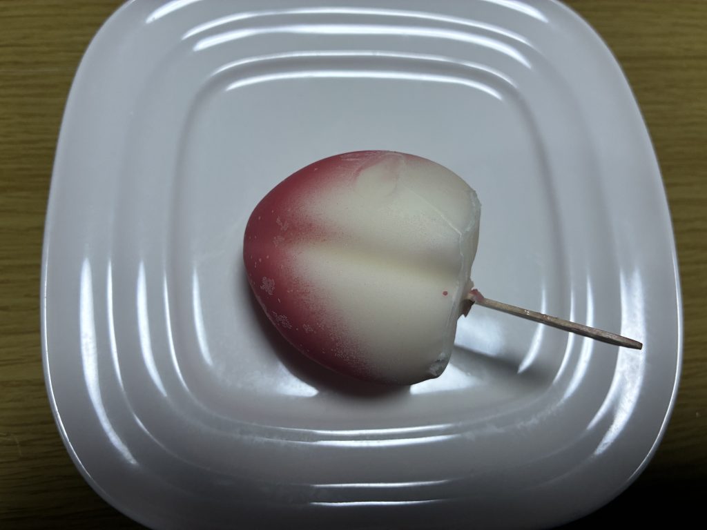 見た目からして可愛すぎる!!コンビニのアイスエリアの中で一際目立ってました。本物のモモ感が見た目だけでも「ほしい!!」という気持ちが溢れ出てしまいます。
