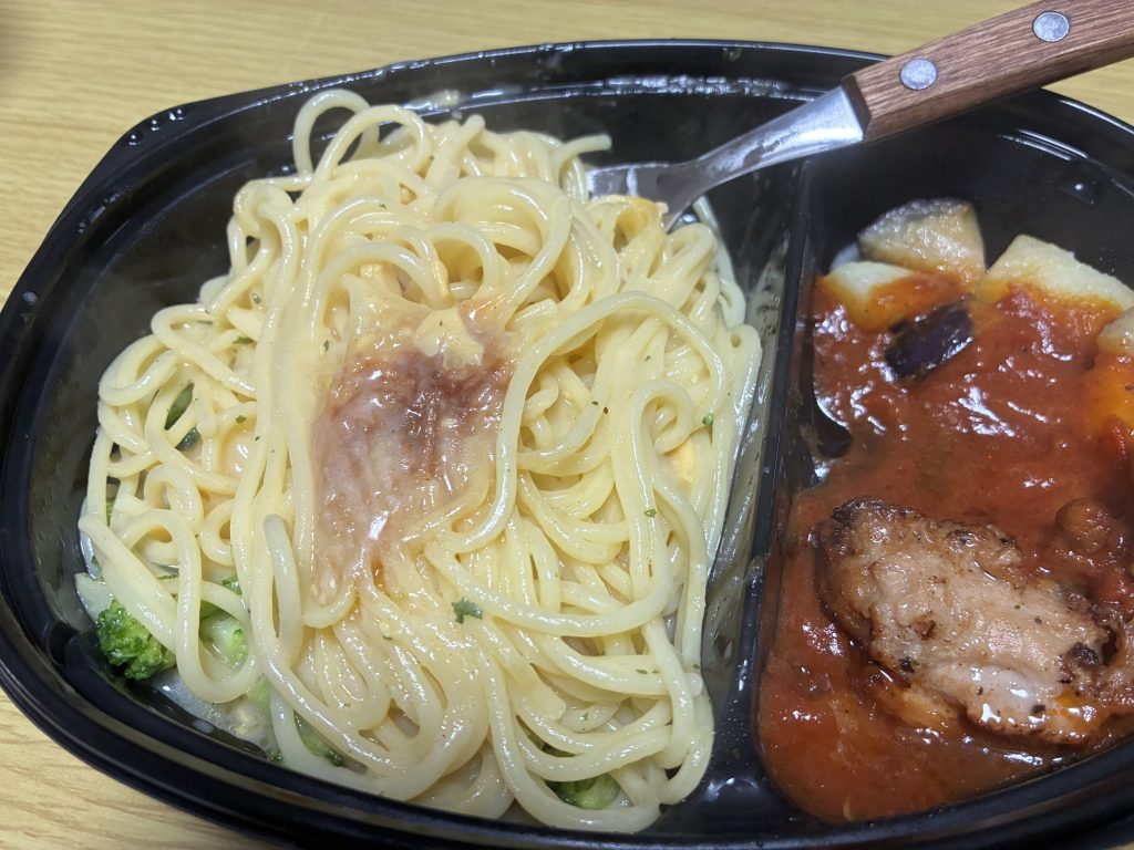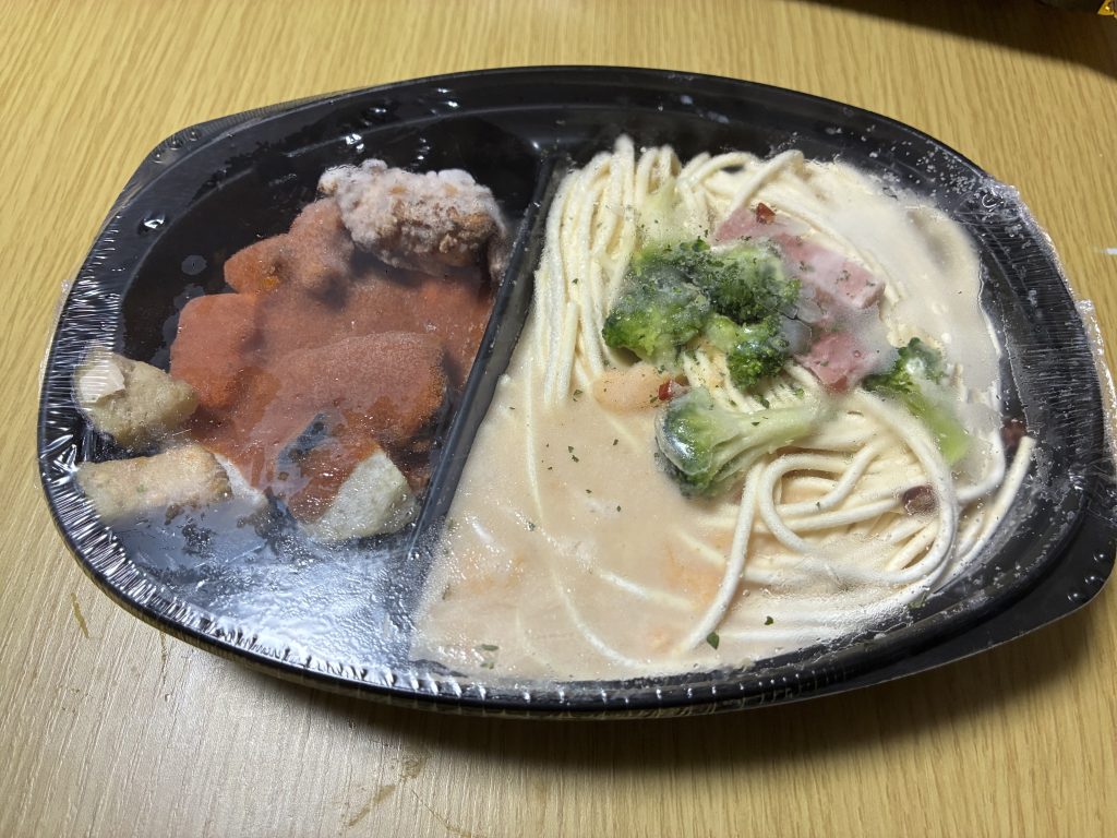 でも難点があって、電子レンジの調子によってパスタに火が入りすぎてカチカチになったパスタの塊ができてしまいます。