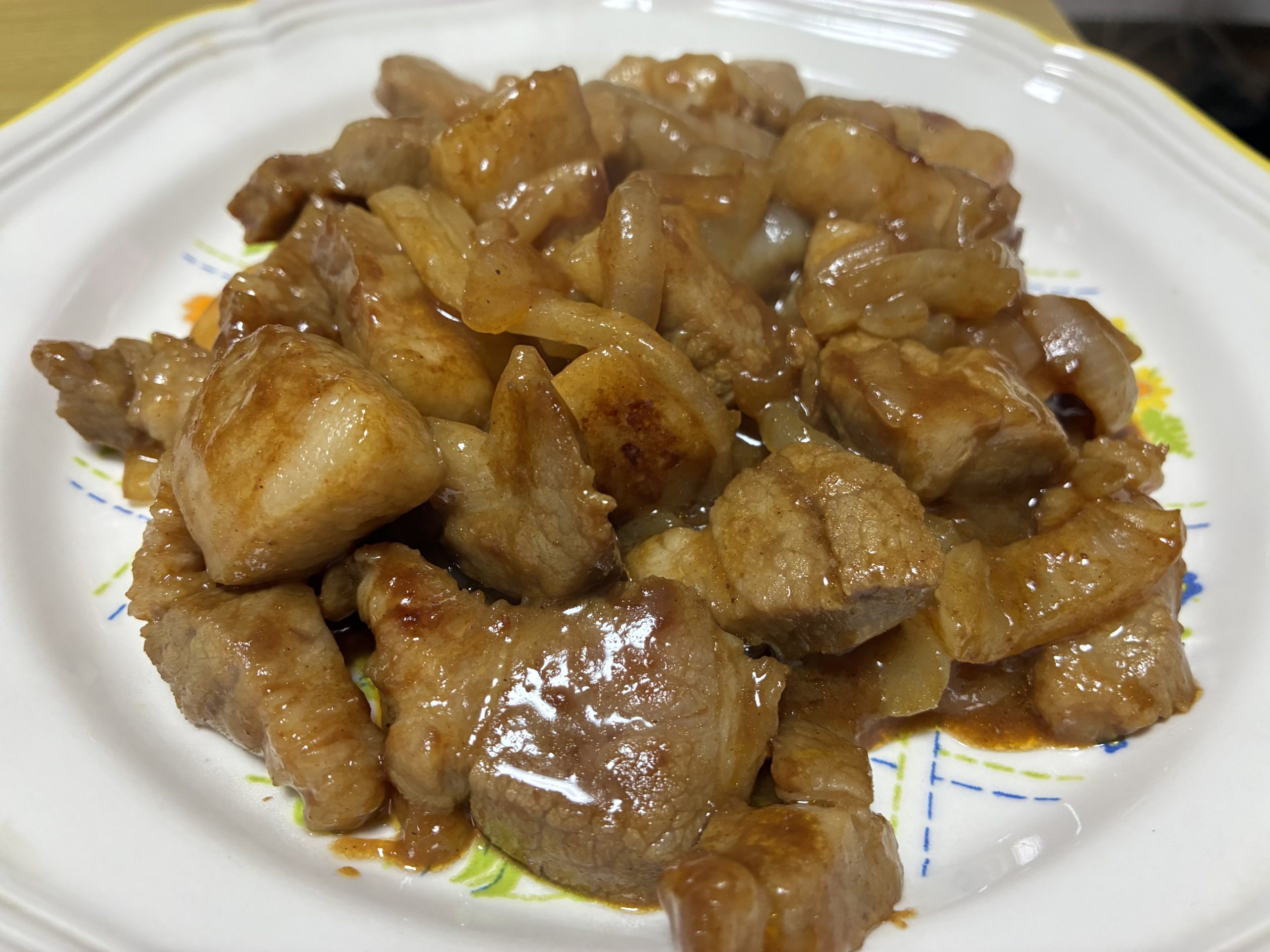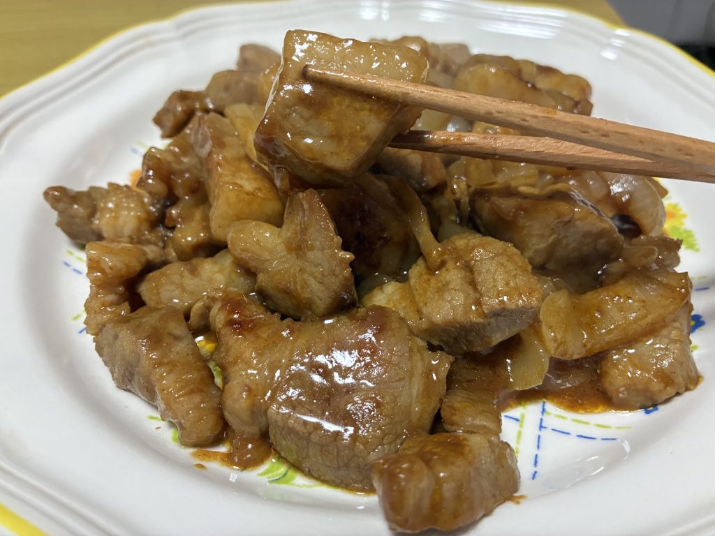 豚肉の脂肪が多めですが、脂のおかげで焦げ付かずに調理することができます。