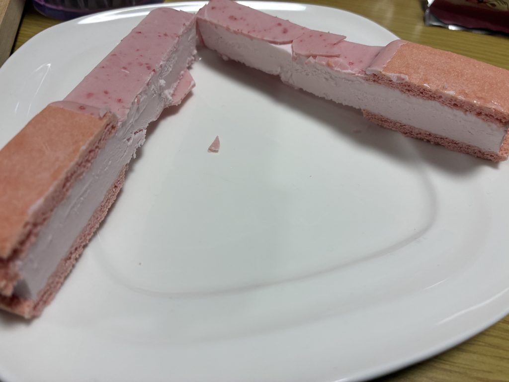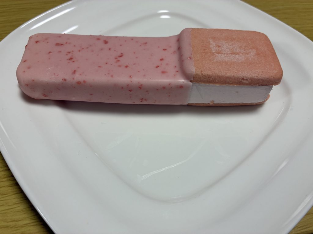 クッキーの部分はしっとりしてて、いちごアイスとクッキーの組み合わせは抜群です。