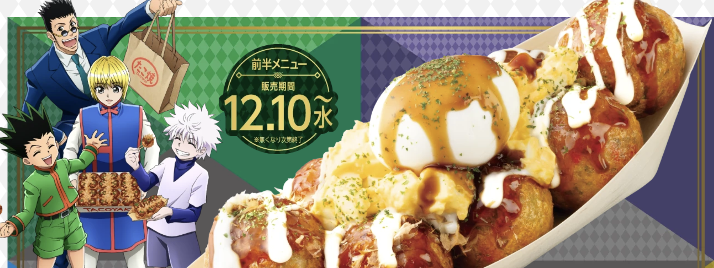 銀だことHUNTER×HUNTERのコラボが12月10日から開始されました。12月10日からのコラボでは「丸ごと卵の濃厚チーズてりたま」が新商品として販売されており、更に銀だことHUNTER×HUNTERのオリジナルカードもついてきます。