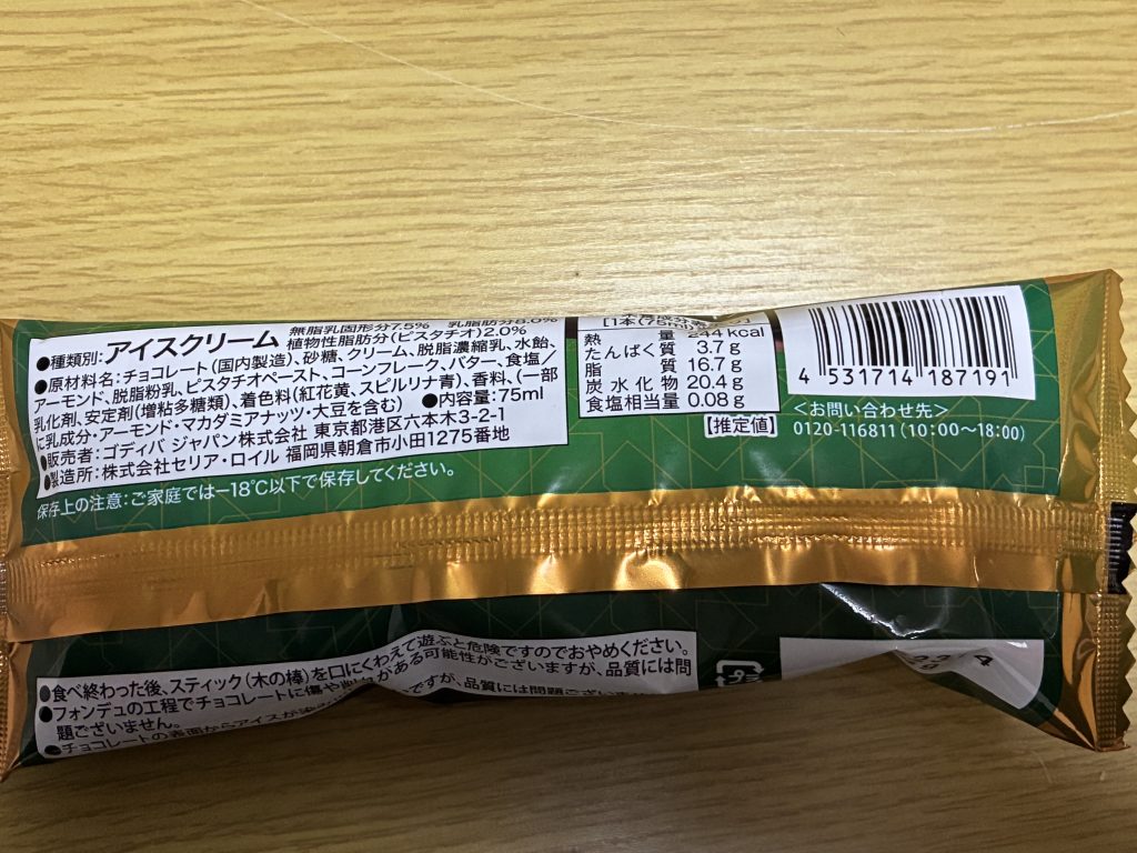 そしてさすがGODIVA、ピスタチオの風味が非常に濃厚です。着色料感のない、ナッツ本来の香ばしさとコクがしっかり感じられます。甘すぎないアイスと、中心部のとろりとしたピスタチオペーストの対比が絶妙です。
