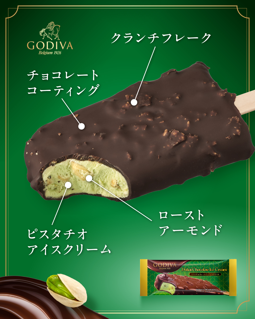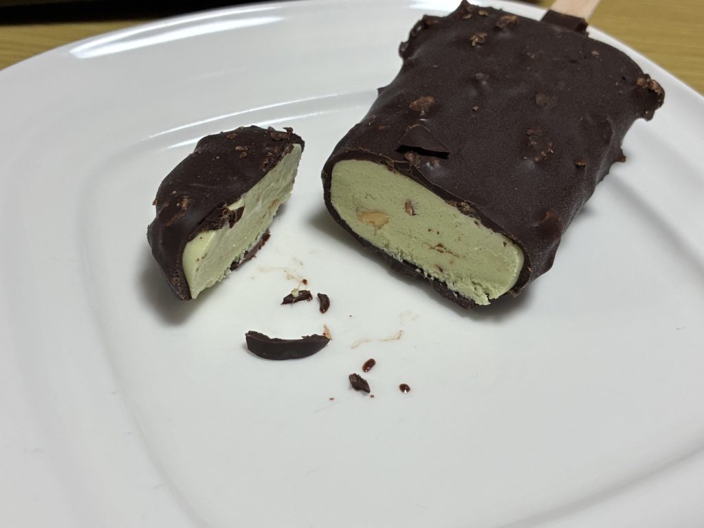 濃厚なピスタチオアイスクリームを チョコレートでコーティング。