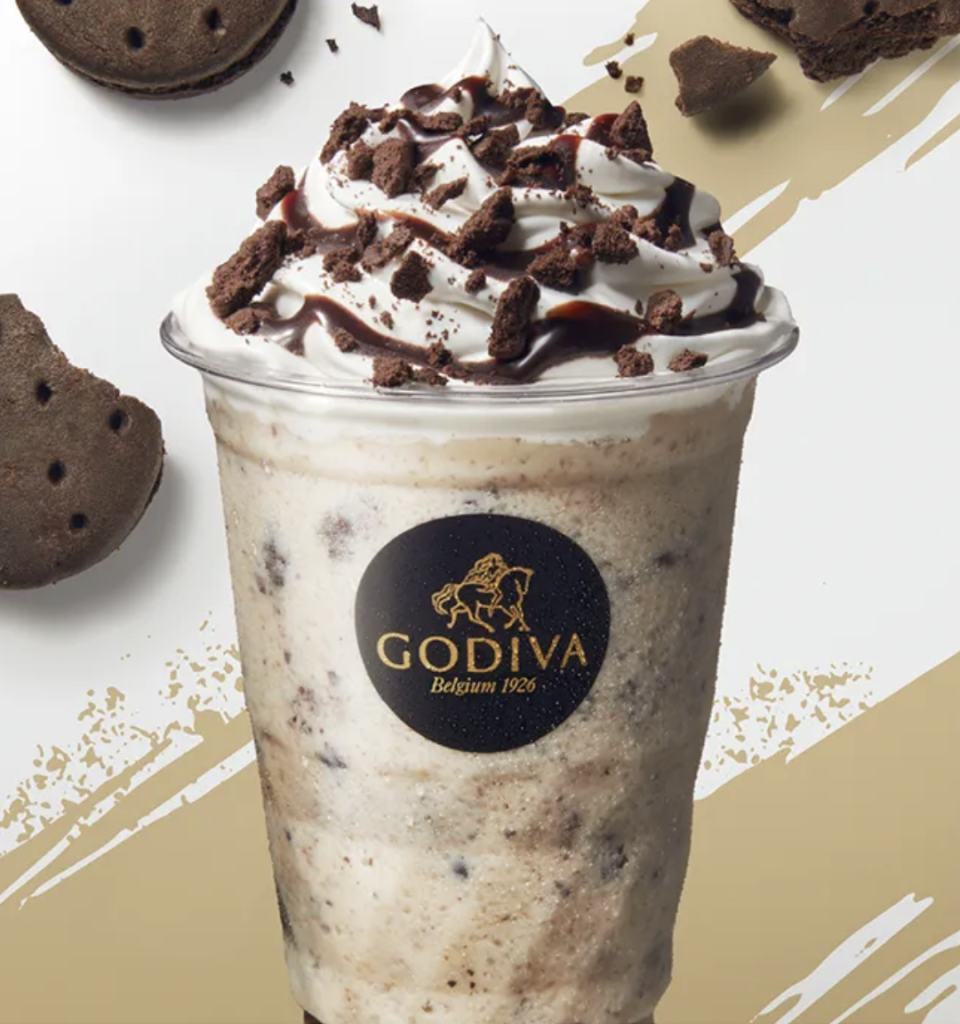 カカオ31%のなめらかなベルギー産ミルクチョコレートに、砕いたココアクッキーをたっぷりとブレンドし、仕上げには、ホワイトチョコレートが香るホイップクリームと、サクサクのクッキー、さらにチョコソースをトッピングしました。チョコレートのコクとクッキーの香ばしさ、クリームのまろやかさがとけ合う、ゴディバならではのクッキー&クリーム体験をお楽しみください。