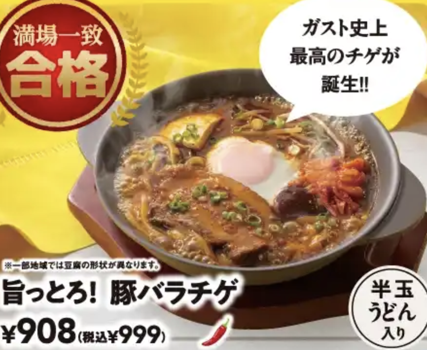 2025年11月8日放送の ジョブチューン で紹介された ガスト のメニュー「旨っとろ!豚バラチゲ」を食べてみました。正直レビューします。