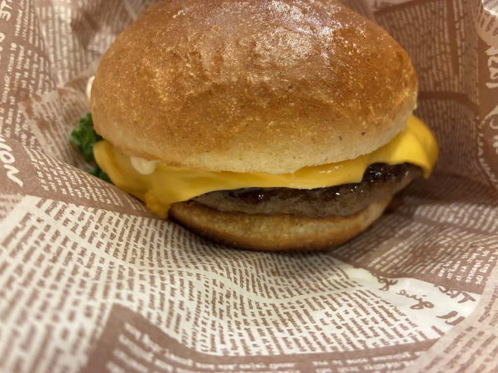 バンズは、いわゆる「ふかふか」ではあるけど、決してふにゃっと柔らかすぎず、ほど良く噛みごたえがあって、バンズ自体の香ばしさ・小麦感がしっかり感じられます。