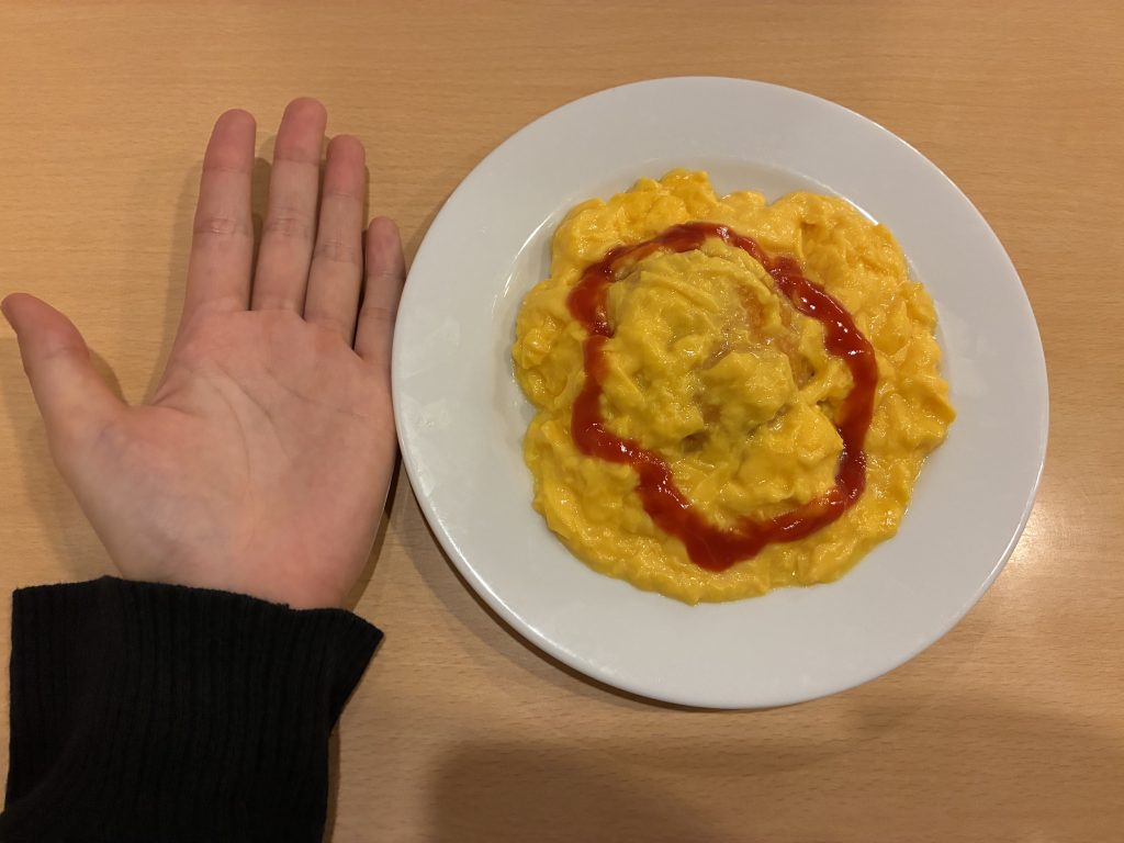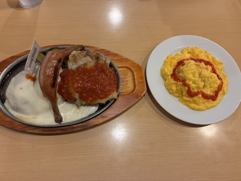 こんなに肉がもりもりだとご飯が食べたくなるので、オムライスの存在はかなりありがたいです。卵のふわふわかんがたまらない美味しいオムライスでした。ですが写真のイメージよりも小さめな感じでした。