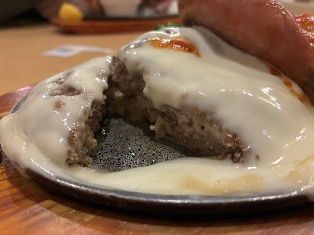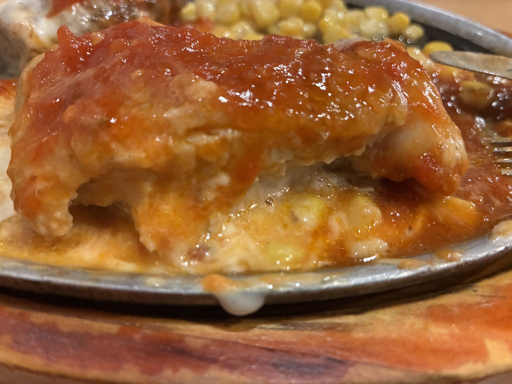 皿に盛られた肉の量と種類で、まず圧倒される。「牛・豚・鶏+骨付きフランク+ハンバーグ」のバラエティとボリューム感は、“肉を食べた!”という満足感がすごいです!ハンバーグにはとろける白いチーズソースがかかっていて、チーズのクリーミーさが肉の旨みを引き立てます。