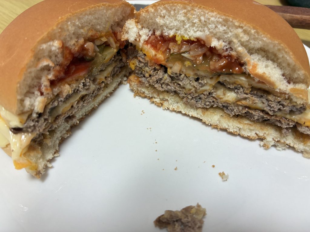味はいつものチーズバーガーなんですが、チーズが更にプラスされたことでいつものチーズバーガーよりもチーズの濃厚感が味わえます。