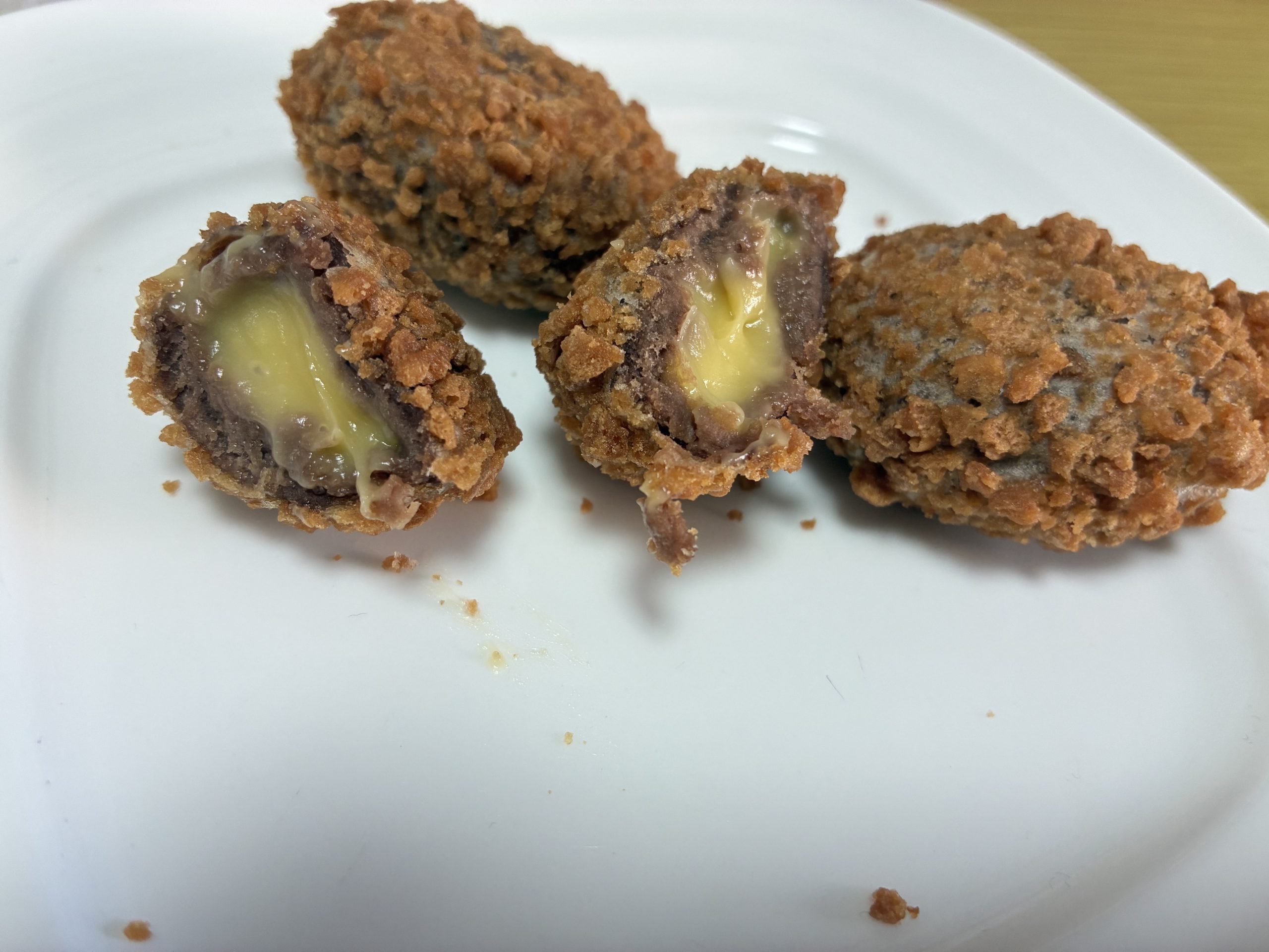 全部合わせるとザクザクモチモチ、クリームがトロッとしていてすごくおいしいです。