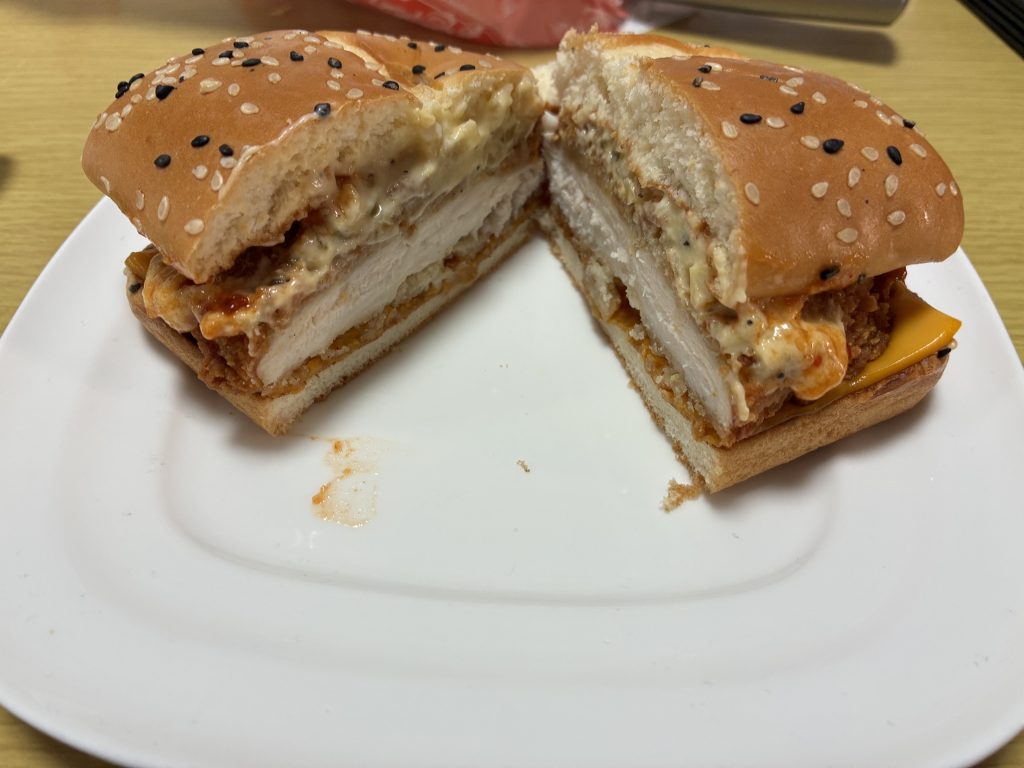 ホットチリ&タルタルチキンと名前から辛そう!と警戒しがちですが、これは少しピリ辛ですが、マヨでマイルドになっているので、辛いものが苦手な人でも普通に食べれます。逆に激辛を期待して食べる人は、そこまで辛くないので要注意です。