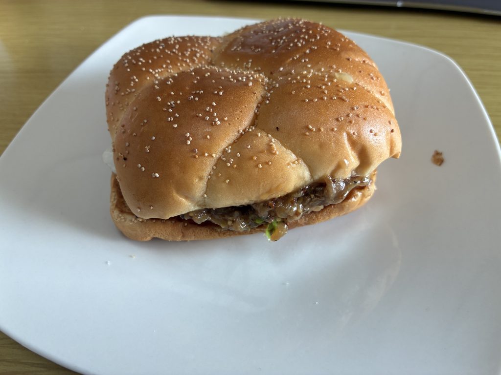 ふわふわのバンズに厚めのお肉とマスタードと黒胡椒がしっかり効いたソースが最高!