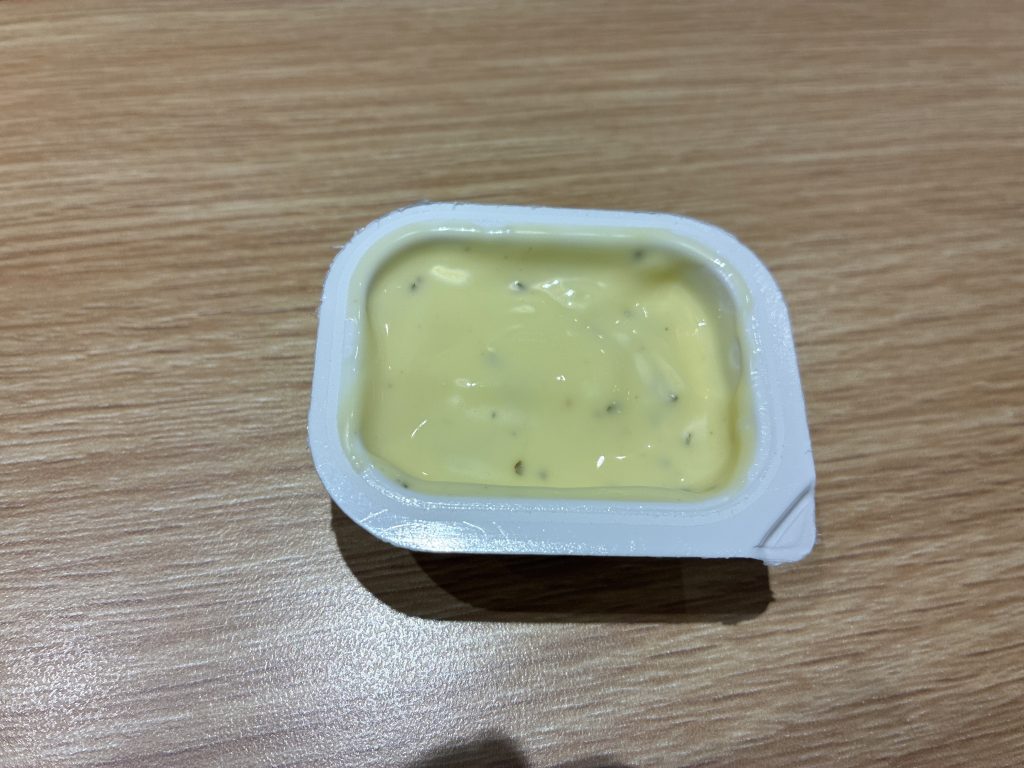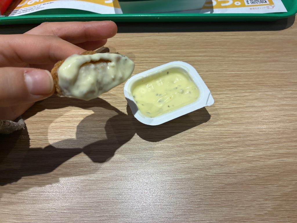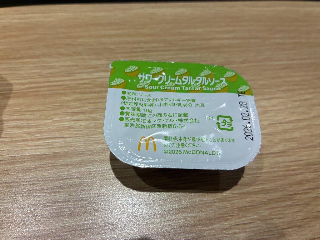 味は、程よい酸味とクリーミーさのバランスがよく、しつこさがなく軽やかな印象です。サワークリームの爽やかさが前面に出つつ、タルタルソースらしいまろやかさとやさしい甘みも感じられるため、新作の「スパイシーチキンマックナゲット 黒胡椒ガーリック」との相性が抜群です。酸味が全体をさっぱりとまとめてくれます。