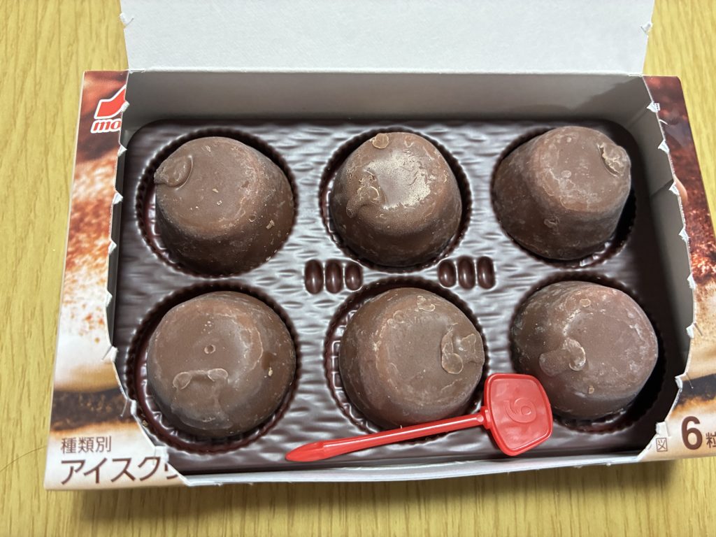 中のアイスは、とろっとした口どけの良いミルクアイスに、マスカルポーネのコクが加わってかなり濃厚です。ひと口目からティラミスのクリーム部分を食べているような風味がしっかり感じられ、サイズは小さいのにマスカルポーネの甘みとコーヒーのほろ苦さが交互に広がり、ティラミス特有のバランスが上手くアイスで再現されている。
