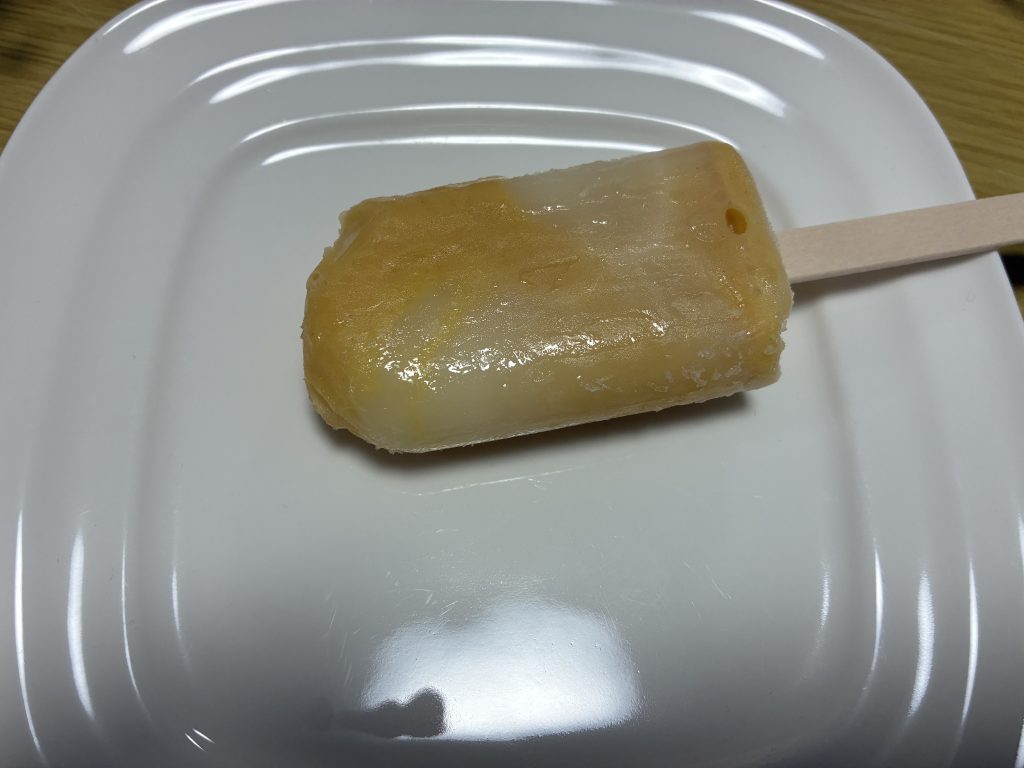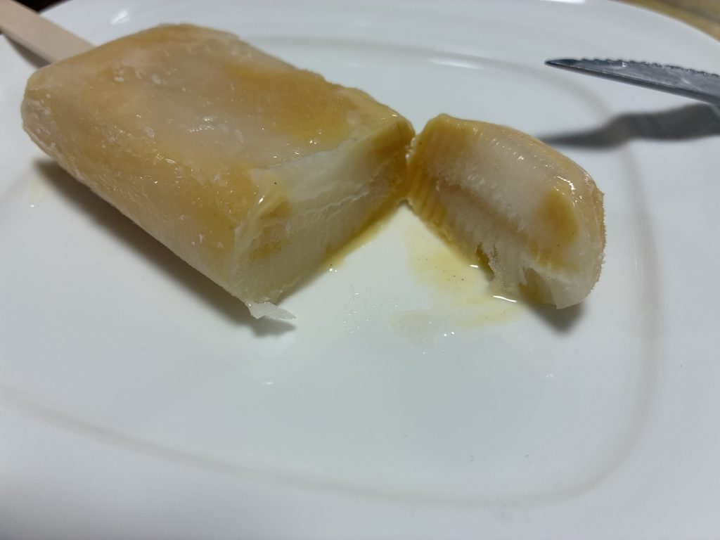 断面はこんな感じです。切った感じは白い部分がシャリッとしていて、黄色いところがねっとりしてます。