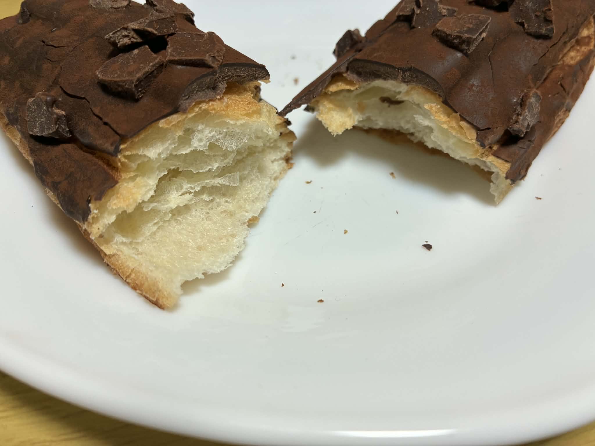 チョコレートのコーティングが厚めでさらにチョコレートのブロックが乗っているので、バリバリ感を味わうことができ、パンの生地にバターがしっかり入っているのてパン自体もおいしいです。