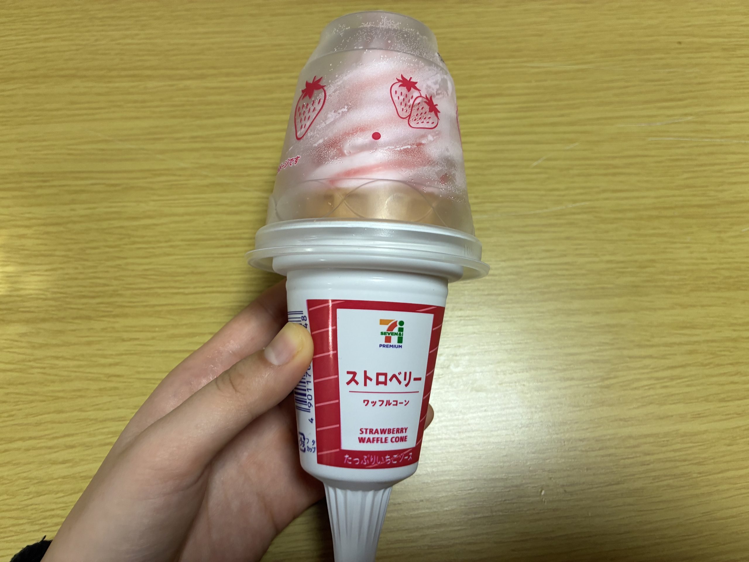 【セブン】「7プレミアム ワッフルコーン つぶつぶ果肉のストロベリー」食べてみた