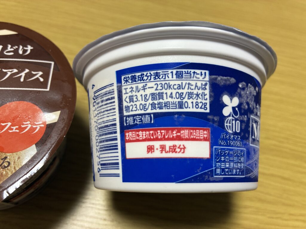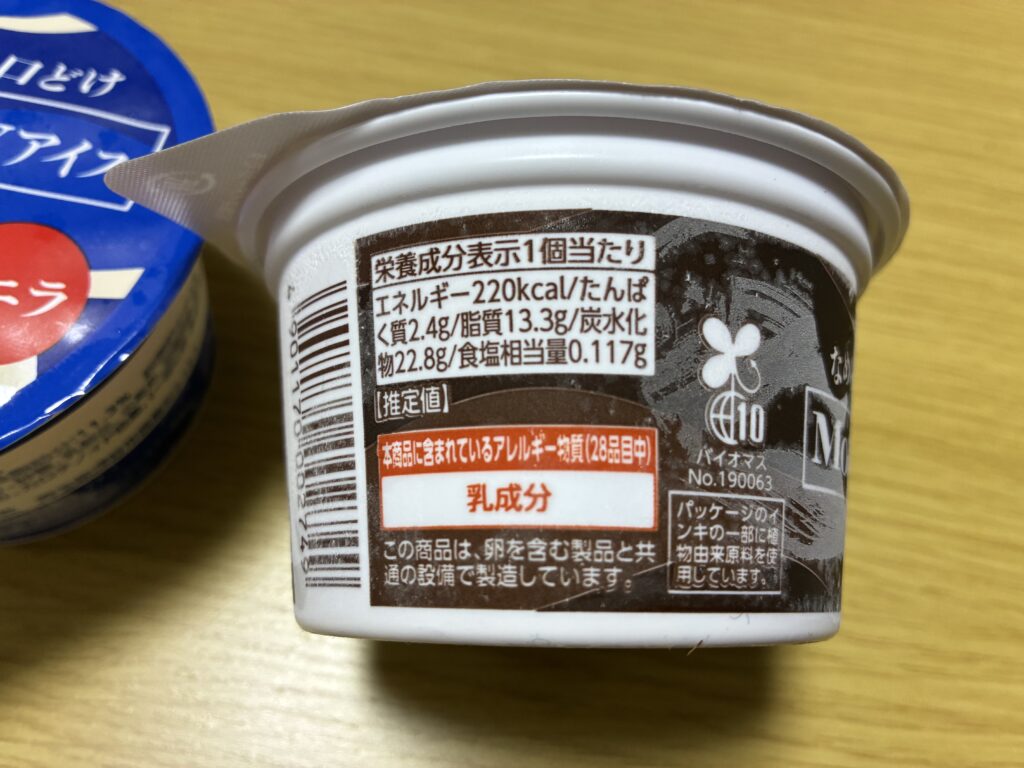 栄養表示 一箱あたり: エネルギー 260 kcal、たんぱく質 2.5 g、脂質 18.3 g、炭水化物 21.4 g、食塩相当量 0.106g